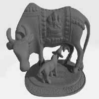 This imagery is found across most households in India. To the Hindu, the cow symbolizes all other creatures. The cow is a symbol of the Earth, the nourisher, the ever-giving, undemanding provider. The cow represents life and the sustenance of life. The cow is so generous, taking nothing but water, grass and grain. It gives more than it takes, as does the liberated soul give of his spiritual knowledge. The cow is considered a symbol of grace and abundance in Hindu culture. Veneration of the cow instils in Hindus the virtues of gentleness, receptivity and connectedness with nature.