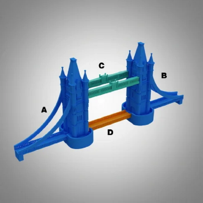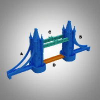 타워교를 작게 축소하여 히스토리 모형으로 모델링 하였다. 부품들을 출력한 후 접착제를 사용하여 조립하여야 한다. 전체 크기는 약 10cm이다.