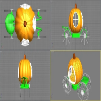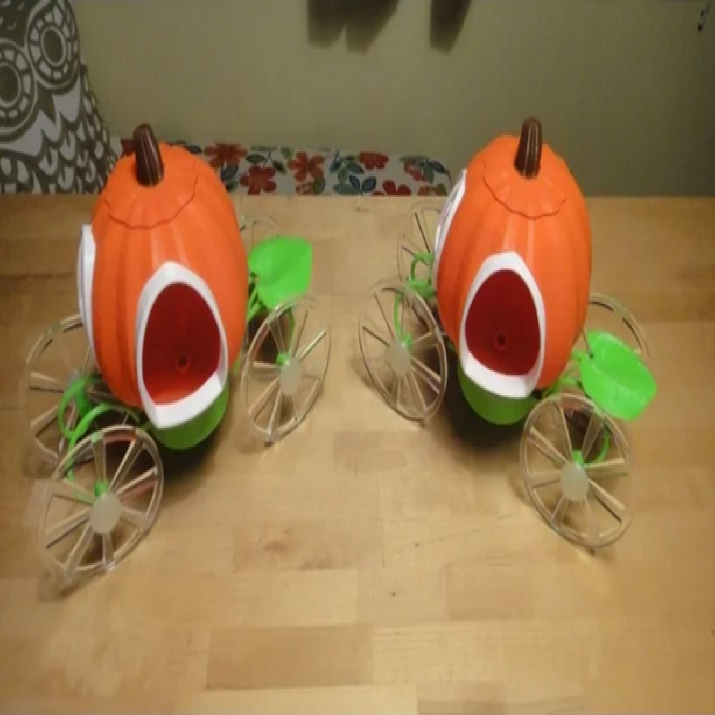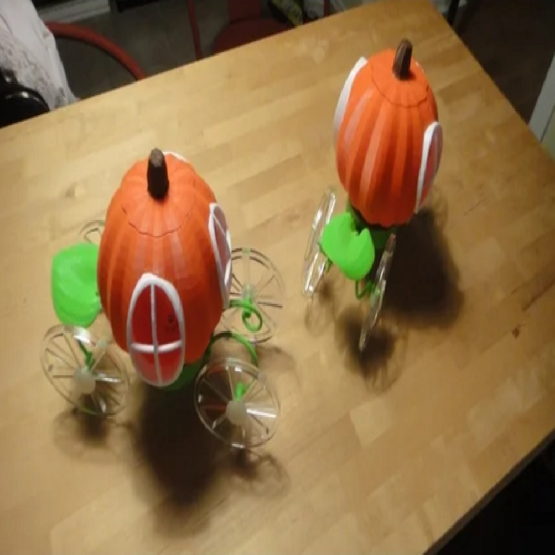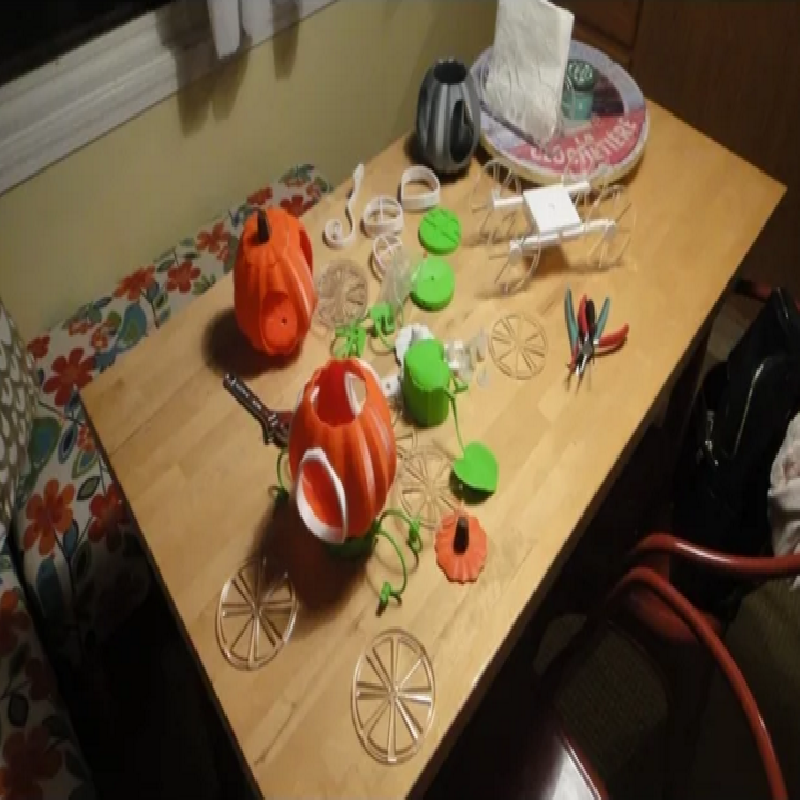 ARM and ARM_MIRROR are mirror images of each other, files supplied for convenience. Two each are required. Removable pumpkin lid comes in two parts for easy coloration. Press fit or superglue. Four HUBs are required and four WHEELs.