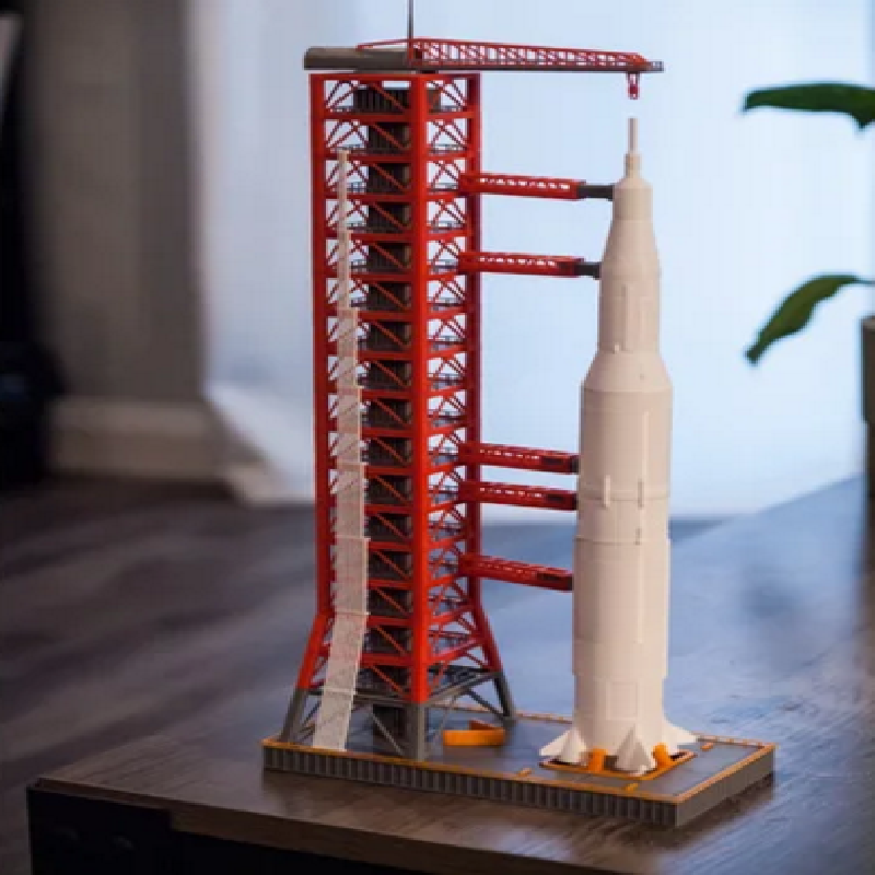 A display stand for RealAbsurdity's Snap-Fit Saturn V rocket. This is the updated version of my stand with the addition of a detailed gantry/tower. designed to be printed without any support.