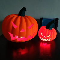 To brighten the pumpkin, use a bicycle lamp as shown in the photo. You have 2 size of pumpkin to print, the stalk fits two sizes.