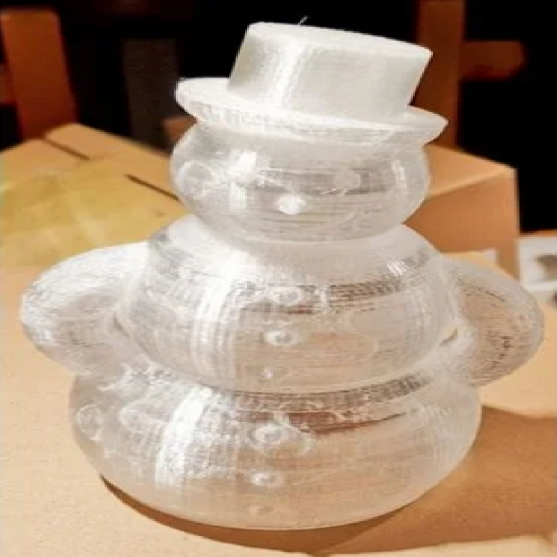 The most usable filament for this is probably transparent (uncolored) PLA or PETG. I printed it in 0.2mm resolution. I used a wallcount of only 1 to get thin walls - so that with the transparent PLA the light would get through really good - be aware though, that this makes the snowman somewhat delicate. It is sturdy enough for a visual ornament, but you can crush it easily with one hand if you grip it hard. It's more to look at than to play with.