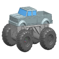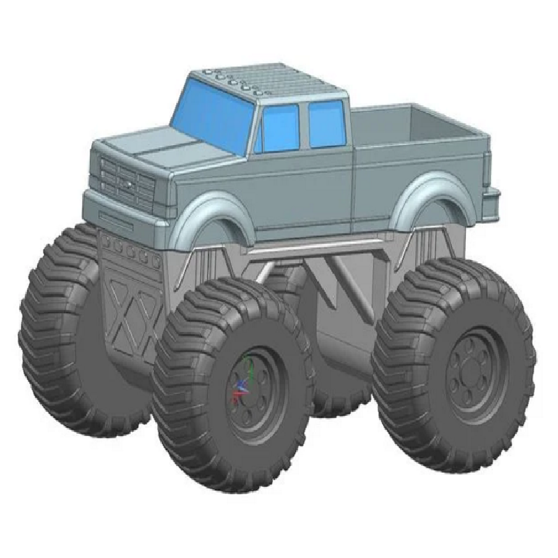 Monster Truck assembly based off the Old Body Style Ford Superduty. Requires NO supports. Pins go into counterbores between CHASSIS and BODY to help locate. I used superglue to put it all together. For the axles, I used steel 6mm x 80 dowel pins.