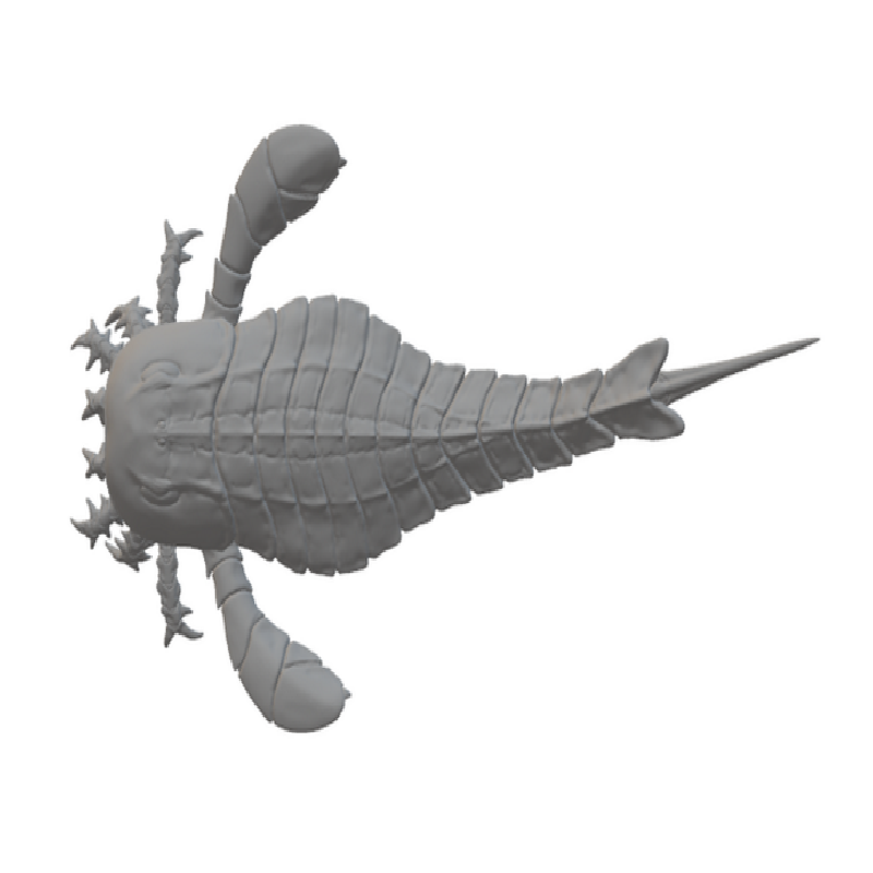 Eurypterus remipes is a relatively large sized eurypterid that can reach up to 1.30 m long from the Silurian period (from 432 to 418 million years ago). Fossils are commonly found in East North America, Europe and northwestern Asia.