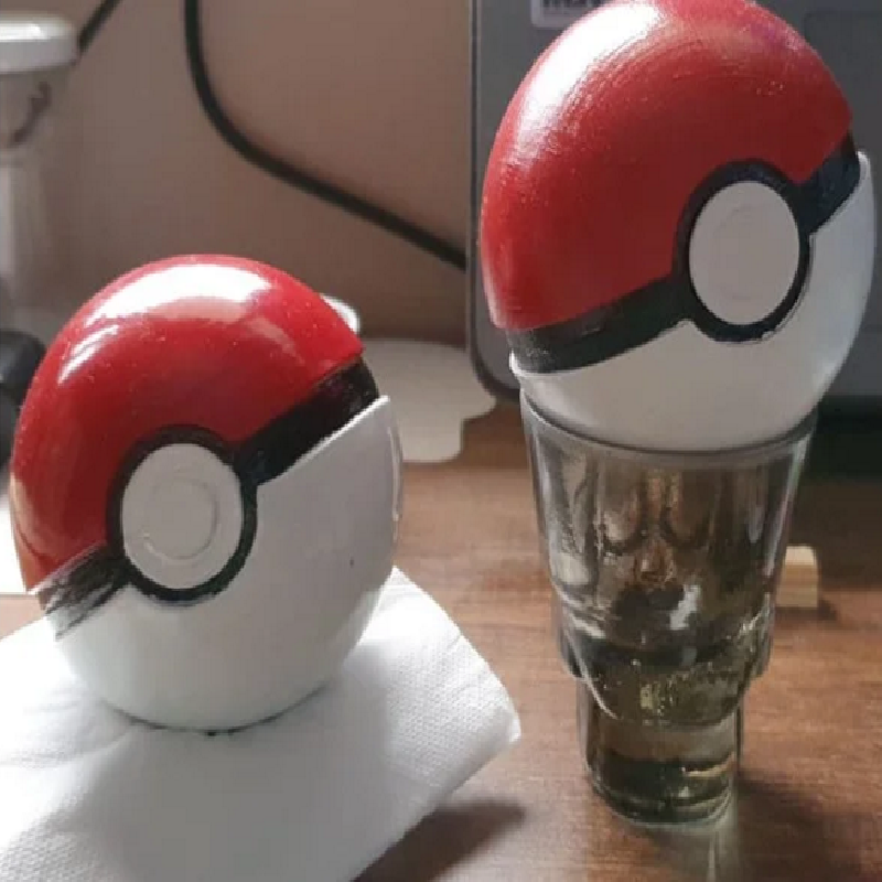 After a long search, I was not able to find anything that matched my necessities, so I've built this pokeball using 3dbuilder.