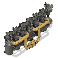 The entire engine would be too big to put into a model since it would take up the space where the motor, battery and esc would sit but I modelled it all anyway. There are also problems printing the crankcase and sump unit unless they are printed with a lot of infill. The entire printed engine would weigh around 250grams and this is too much weight for a 1/5 scale model to carry for no benefit so I made a modified version of only the cylinders which would be useable on most scale models as it is only that part of the engine that is exposed. Even this section weighs around 100 grams!