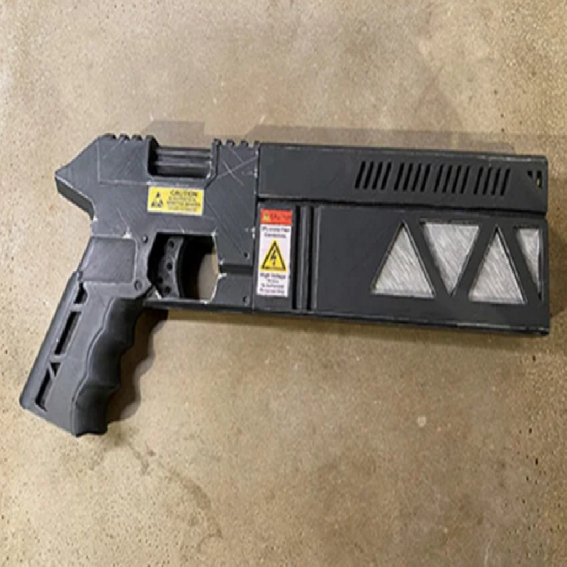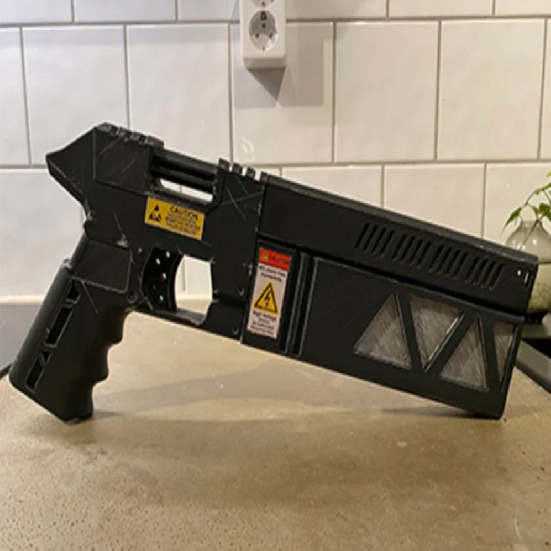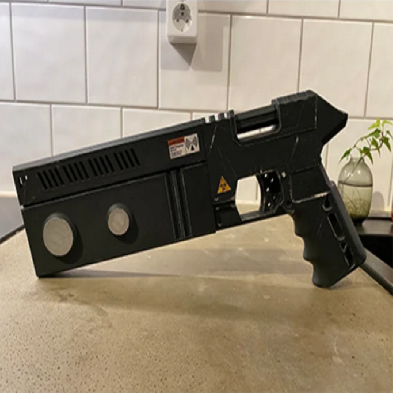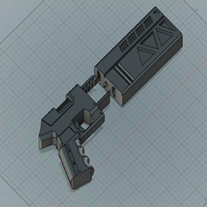 A toy pistol railgun. Solid parts, no moving parts like trigger. Its printed in two parts and they just click together. It wont sick together super well. I glued mine so its stuck.