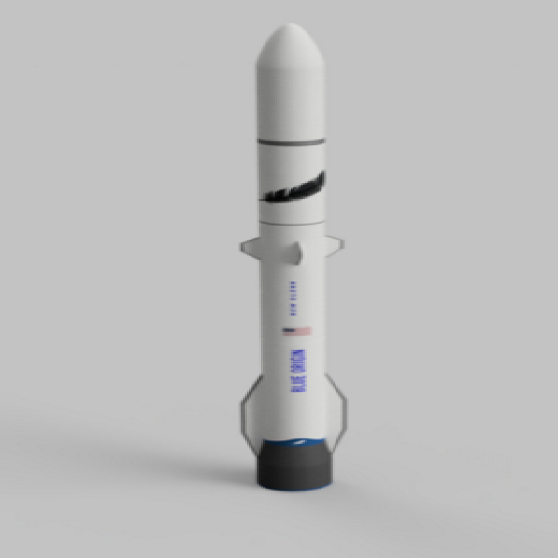 1:100 model of the New Glenn rocket developed by Blue Origin. It is a heavy lift rocket currently under development and is slated to fly NET late 2021. The first stage is powered by 7 BE-4 engines and lands on a drone ship for reuse. It stands at 98 meters tall and 7 meters in diameter.