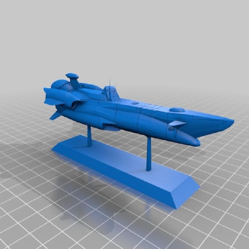 Deuxième création de ma part après Koro Sensei. Le sous-marin Nautilus du capitaine Nemo dans la série Nadia et le secret de l'eau bleu est un véhicule qui me tenait à coeur depuis longtemps. Première série du studio Gainax, au début des années 90, responsable par la suite de l'incontournable Evangelion. Je commence à connaître un peu mieux Blender, le Nautilus a bénéficier de plus de courbes par rapport à Koro, mais j'ai encore du mal à gérer les modificateurs et notamment la solidification. Il reste donc des points à améliorer pour l'impression en 2 parties