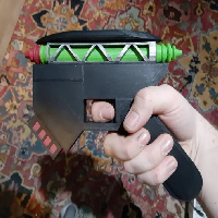 Even though the purpose of them was greatly downplayed to put an emphasis on swordsmanship and martial arts, I've always been intrigued by the Lasguns from Dune, the inherent mystery and intrigue that came with the weapon and its potential in warfare. I based the design on the "Sardaukar Laser Gun" toy from the 1984 film's toyline, and also made a custom grip with the Atreides logo, though also a blank grip for anyone interested in designing their own grip.