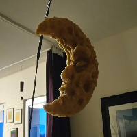 The whole moon can also be hung up somewhere on a nylon twine or put on the stand bit.