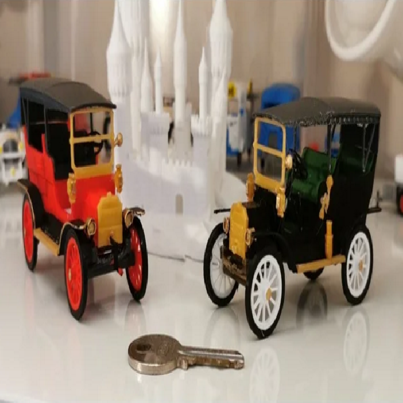 The Ford model T is about 10,5 cm long and the printing time is about 8 hours.