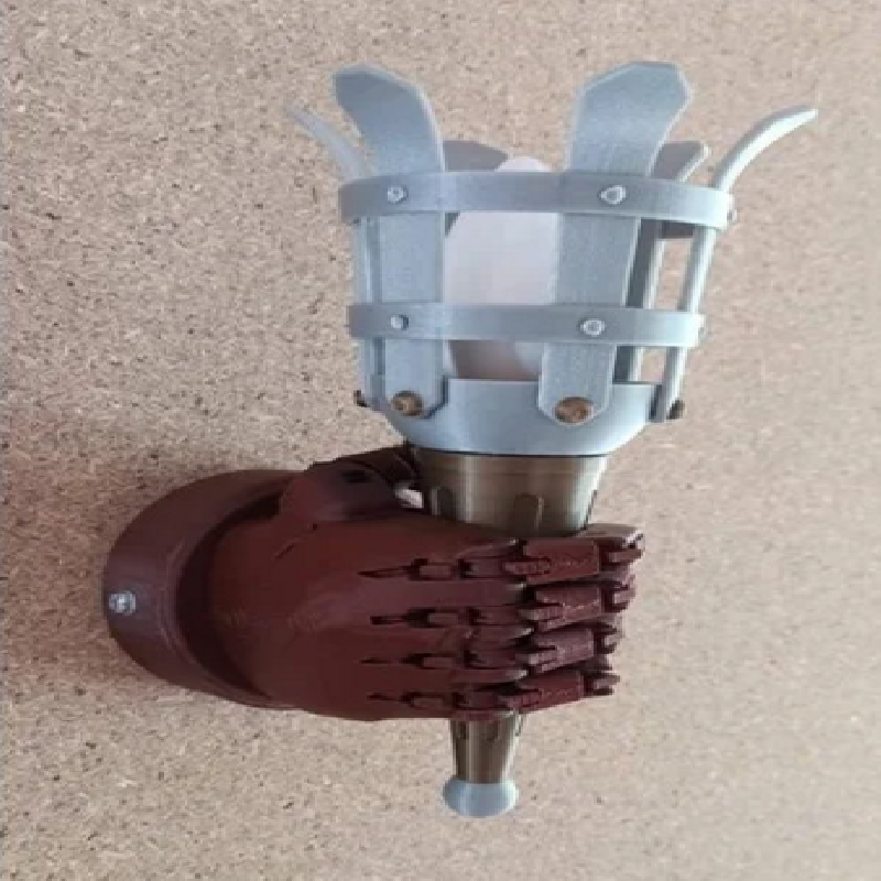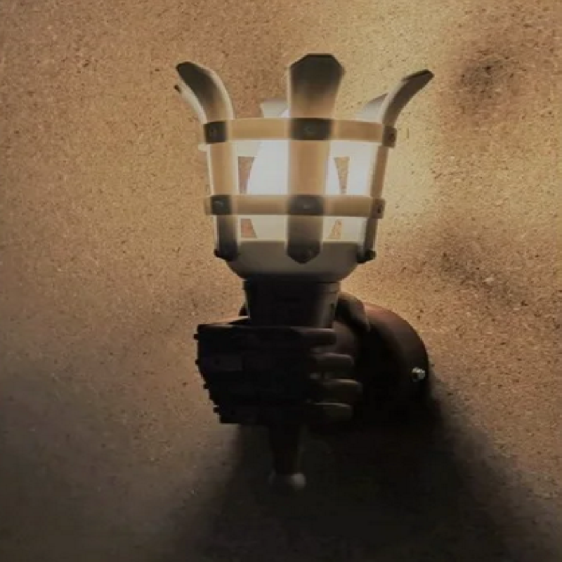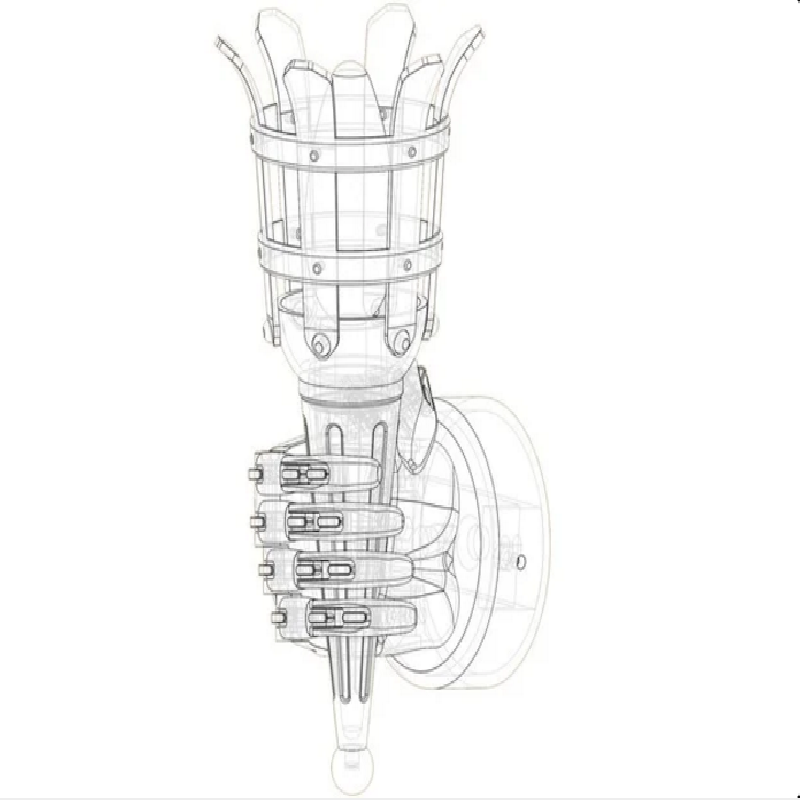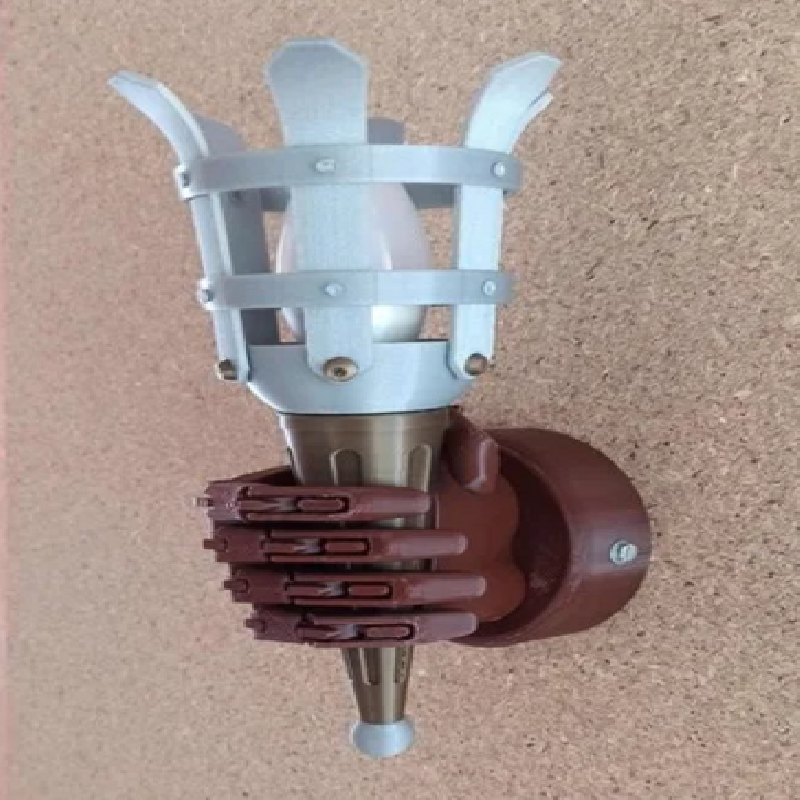 Cette applique de style médiéval imitation fer forgé est créée autour de la prothèse de main Phoenix.