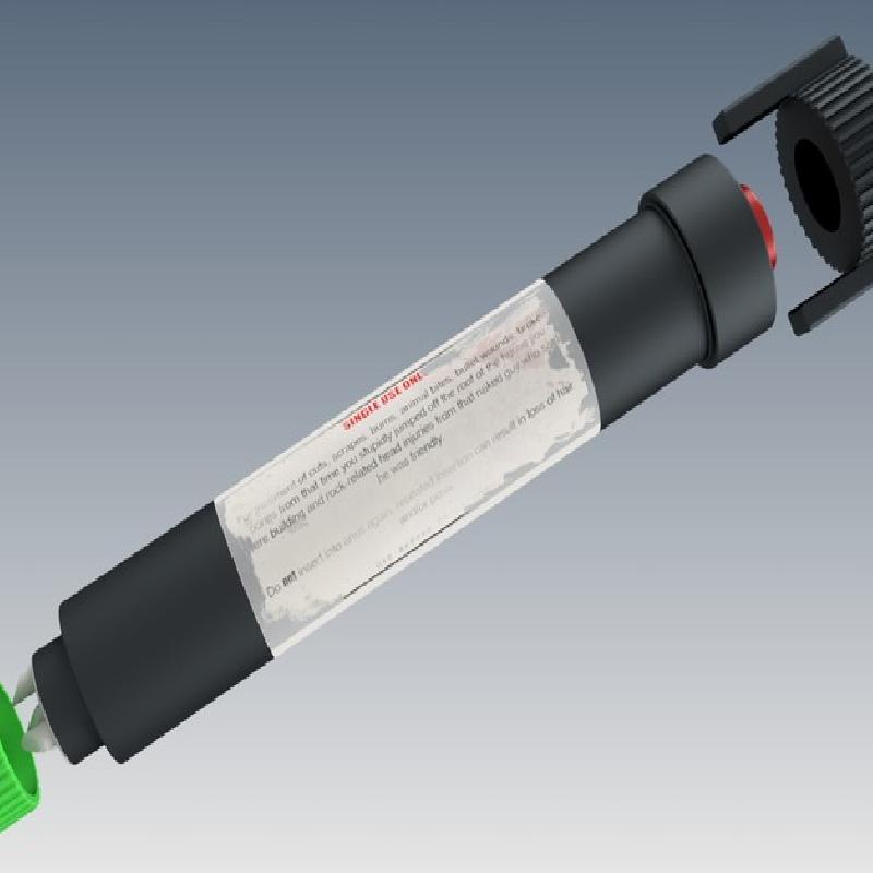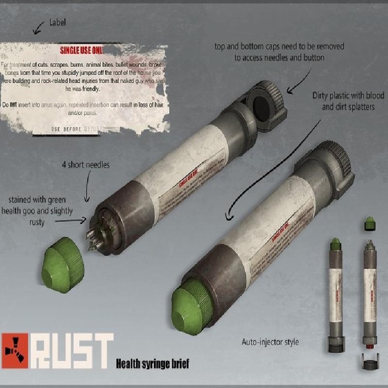 This is a Medical Syringe from the game Rust. A label for it is also uploaded, might need some tweaking irl.