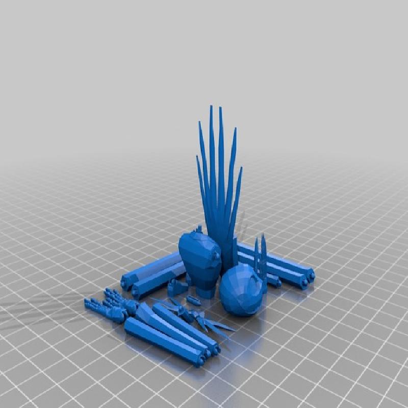 This remix currently includes ball-and-socket joints based on http://www.thingiverse.com/thing:584405, although this is likely to change, as the joints for hips, elbows, etc., should be sculpted to suit the range of movement. (A small piece of filament might work well as a hinge-point in each joint to hold the pieces together, too.)