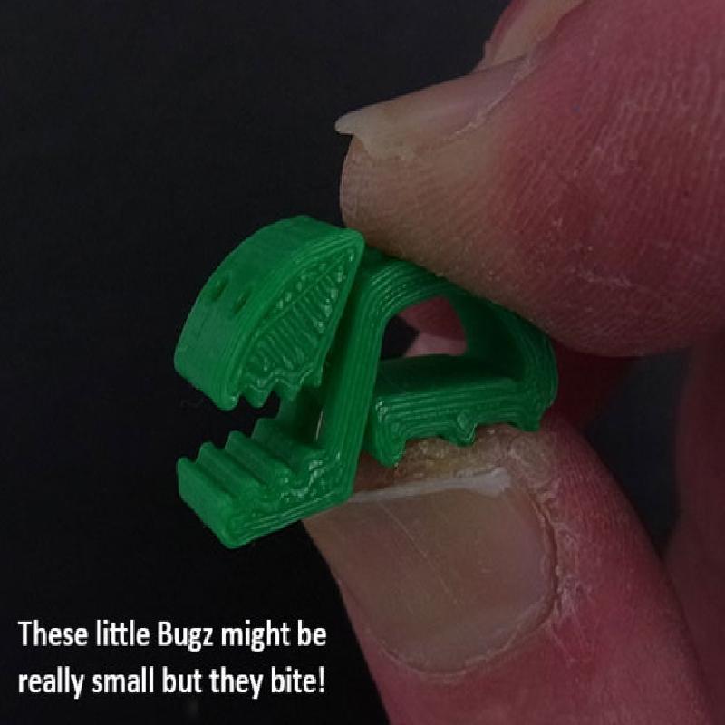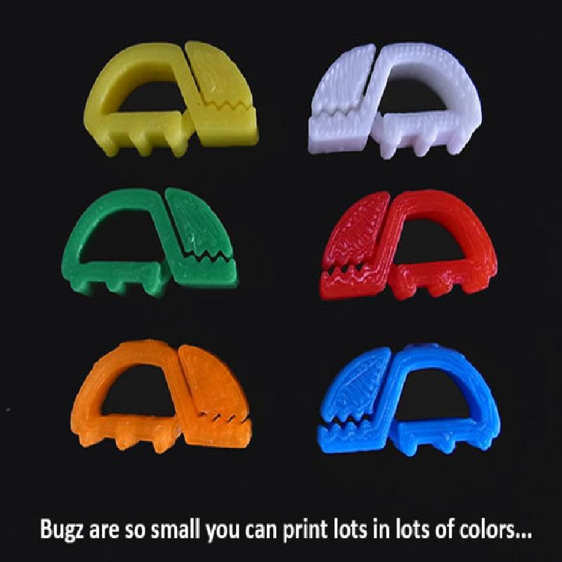 Bugz are fun little things that are probably the smallest biting 3D print available... the mouth is springy, opens and closes... and they have teeth. Printed with PLA and at least 25% infill should result in a surprisingly strong bite for such a small creature.