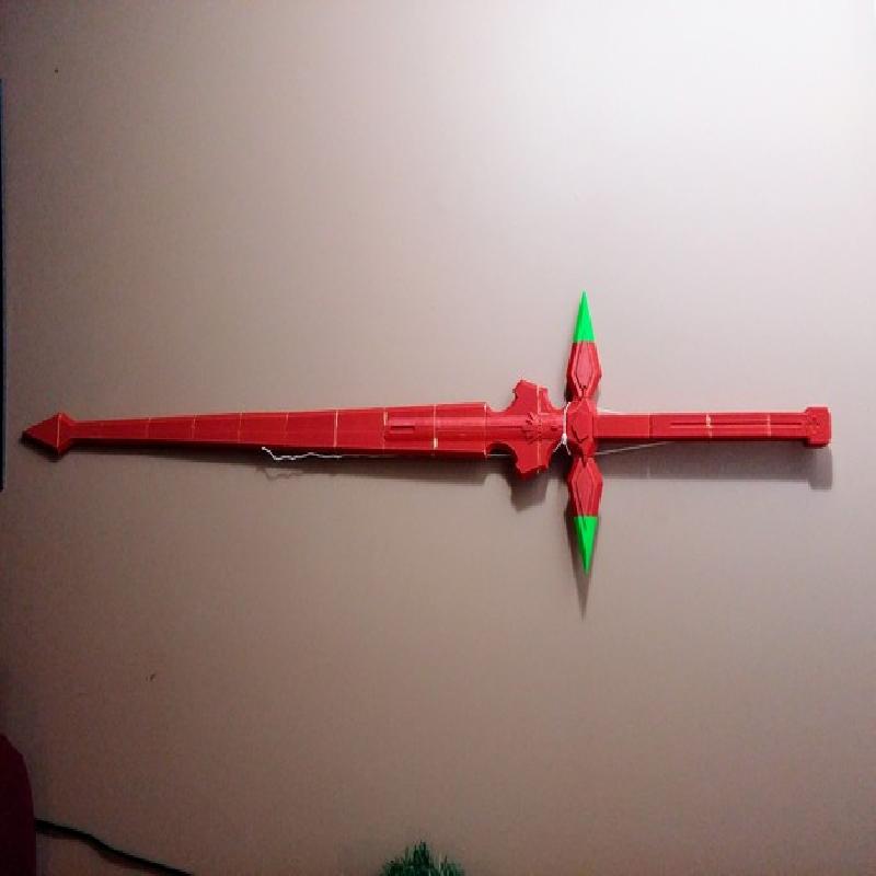 Modeled after Kirito's second sword from the first arc of Sword Arts Online. I designed this one after not being satisfied with the models I found online. I'm still not fully satisfied with the decorative piece above the hilt and my revise it in the future.
