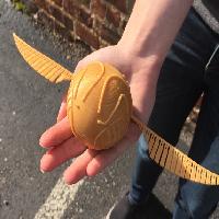 Once dry, attach Snitch_Half.stl to the exposed pin, using a dab of hot glue in the hole to create a permanent, tacky bond.