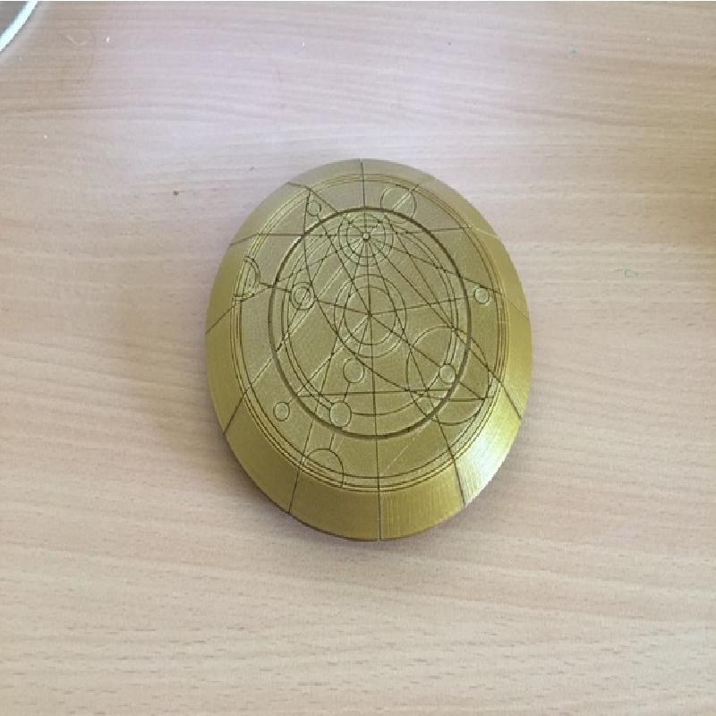 First I traced the designs on the top, based on official design artwork released by the BBC, using Illustrator. Once that was done, I exported it as an SVG into Fusion 360, and built the disc around it. This was my first time trying to carve a design into an object in Fusion 360, so there was a bit of trial and error involved. But it came together eventually, and I am very pleased with the result.