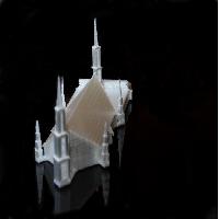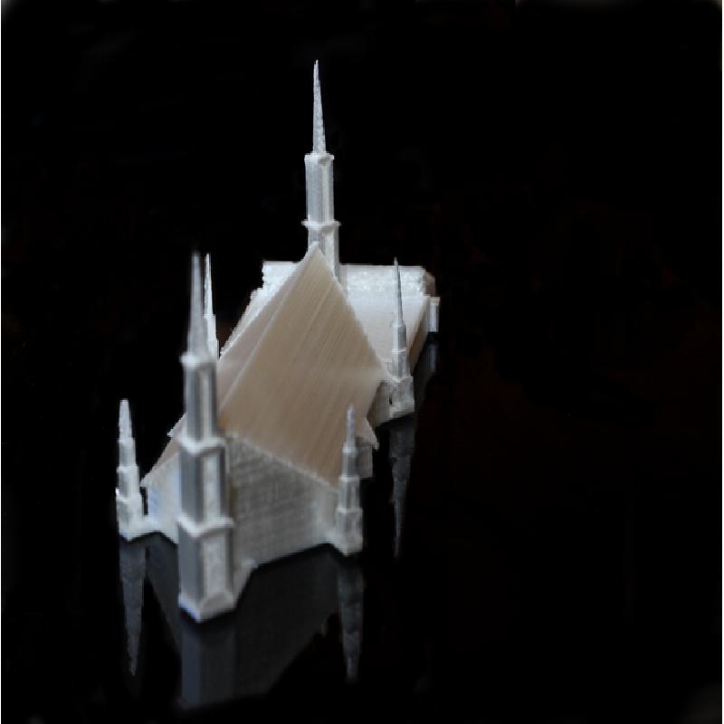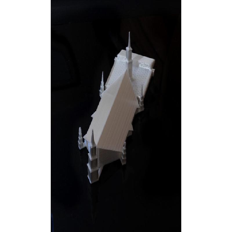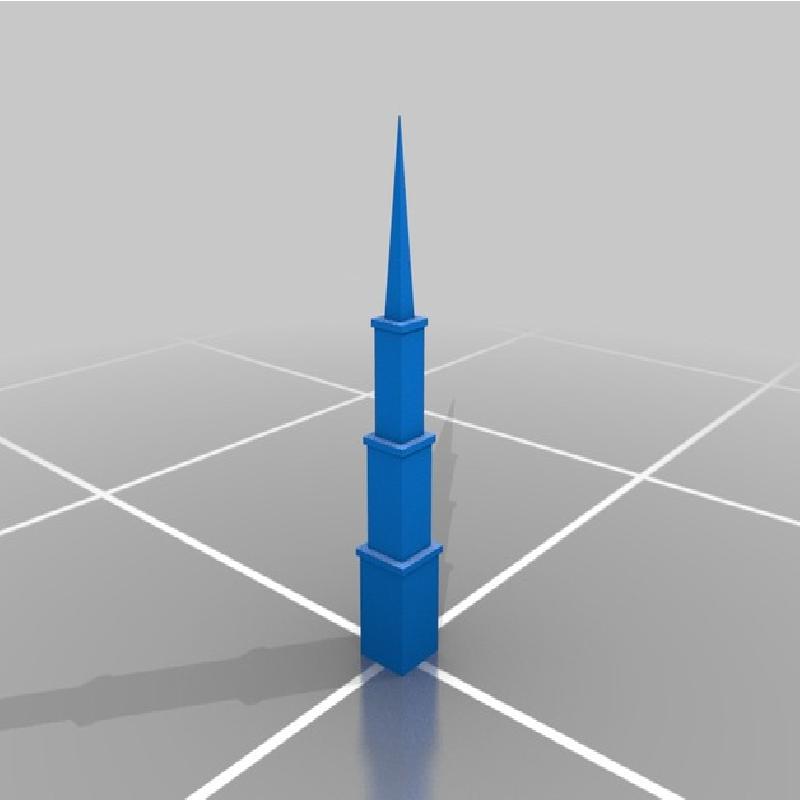 I printed the spires separately on their sides for higher quality to prevent drooping at the top.I'd recommend printing on a raft due to some more fragile parts on the side.