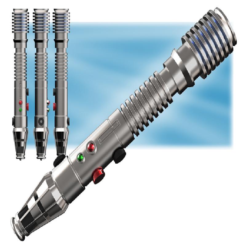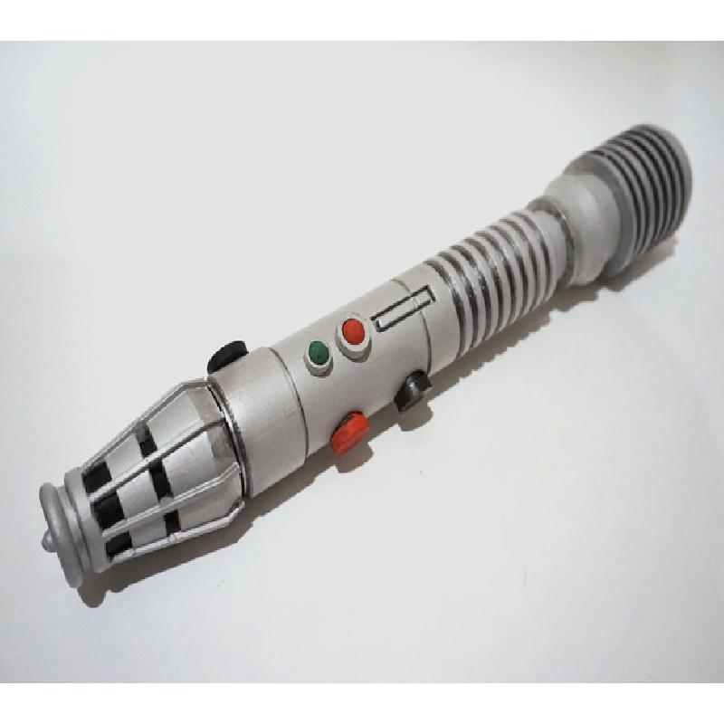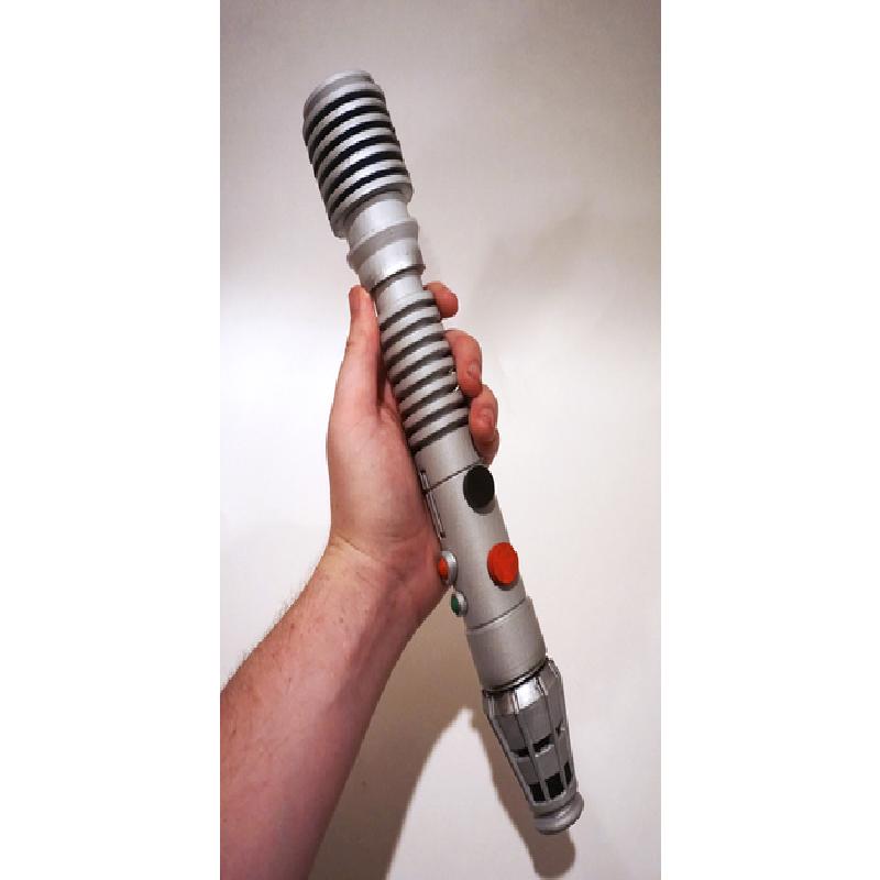 Plo Koon's lightsaber! Strangely similar to Darth Maul's, this saber was originally attributed to Mace Windu in the Episode I visual dictionary, then used as a shared prop between several Jedi in episode II much like Ki-Adi Mundi's. I like Plo Koon the most so I went with him.