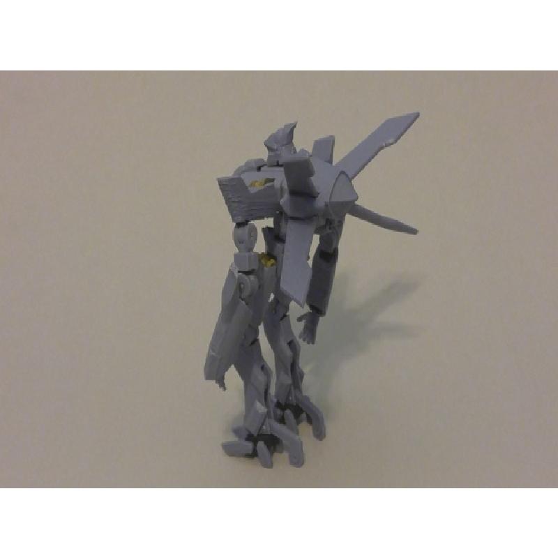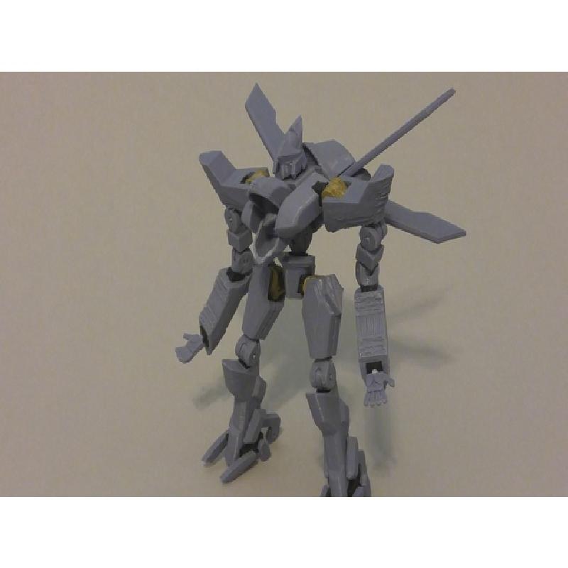 The Shinkiro mech from the anime Code Geass. Unlike the previous two mech models I made; this one does not use ball and socket joints. I designed new joints that uses a piece of 1.75mm filament to keep it together at the pivot (labeled Test Joint V 3 in the stls) and use flexible filament to print out the portion that the pivot swivels on (labeled Test Joint V 3.1). The Arms, Legs, Thighs, Shoulders, Hands and Toes all need to be printed twice, and the wings four times. The stl Test Joint V 3.1 and the neck need to be printed in a flexible filament, everything else can be printed in PLA or ABS. The stl Test Joint V 3.1 needs to be printed 28 times, the stl Test Joint v 3 will need to be printed 9 times and the stl Test Joint V 3.2 will need to be printed twice.