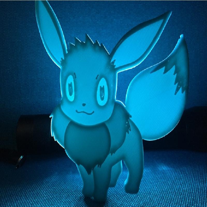 It's Eevee! I'm really pleased with how Eevee came out. I really like the layering of the chest fur and the tip of the tail. It was a little tricky thickening out the eyebrows nose and mouth but I think it turned out well. I've been back lighting these and they look really cool. I think I'm going to start making night light versions!