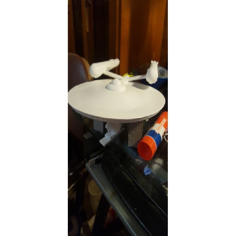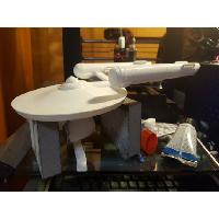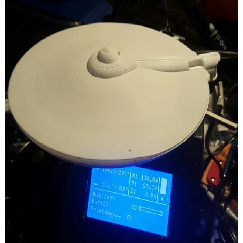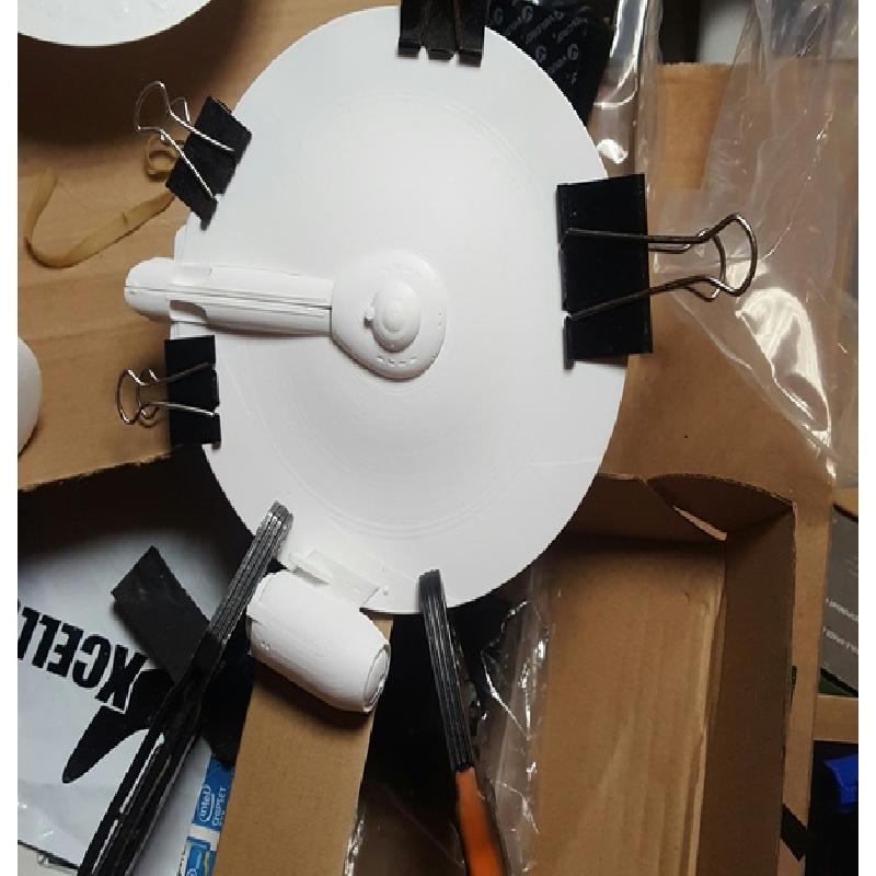 I recommend the struts and dishes to be printed as solid as possible. The struts are almost horizonal, so they'll be bearing a lot of the load of the weight of the nacelles. On the hull, you might want a thicker bottom since you may have to sand it a bit to get it to fit in to the saucer evenly. The upper section of the saucer is thin because I got tired of puttying the seams and then digging putty out of the windows on the saucer. You may need some clips to glue it to the bottom part.