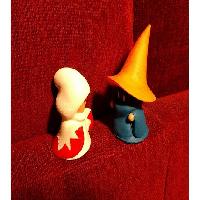 Black and White Mage minions from FFXIV sculpted on top of the low res game models.