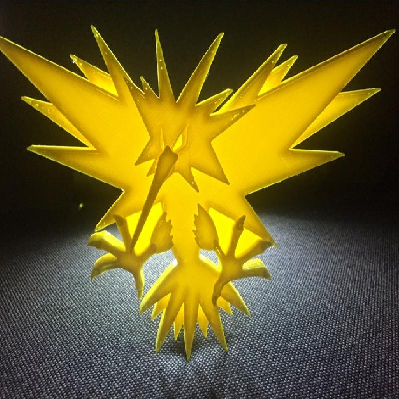 It's Zapdos! Lovin' the angles and dimensions on this one. Eyes turned out better than I thought they would. Probably have to scale up to get all the details. The one in the photo is 200%
