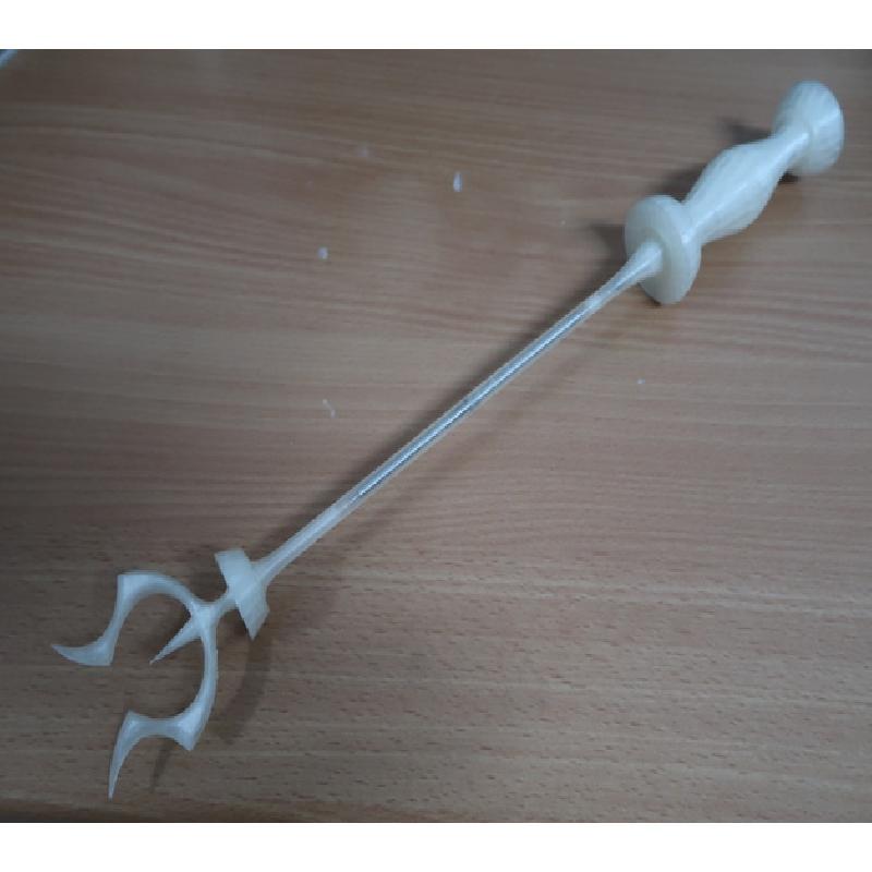 To assemble the rod I inserted small metallic rods (ø3 mm) to reinforce the plastic and glued them. Other parts can be screwed together so you can still detach and switch tips for instance.