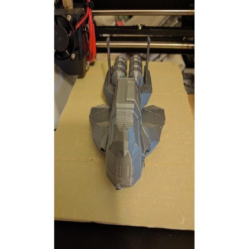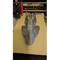 Battlestar Galactica Colonial Raptor. I couldn't find any models out there, so I took one from the game Diaspora. I extracted the model from the game, chose the highest detail mesh, converted it to stl and fixed the surface problems in netfabb. All credits go to Diaspora for the design of the initial model.