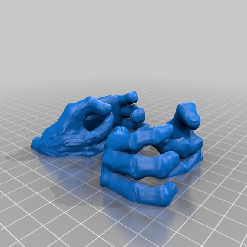 Hands: There are two sets of hand files. The first hang onto 20mm (3/4") material. The second, "AoT Hands Long", will get you around 25mm (1"). Again, I've included files with and without built-in supports.