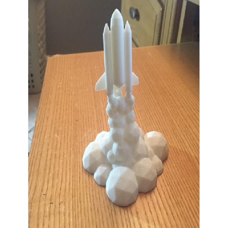 This idea popped into my head about modeling a little space shuttle launching into space a long time ago. Now that i have a 3d printer and very basic knowledge of blender i managed to create just what i imagined! With this neat print, you can decorate your desk to be the launch site of your very own mini space shuttle! It is just a neat model that really spices up your desk.
