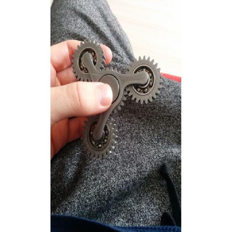 There is a bit of play between the middle gear and the others, so the center of mass is not always in the middle, the spinner may wobble while spinning.