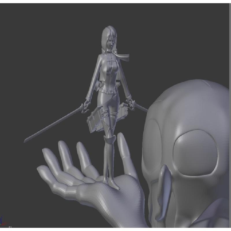je fournis un max de fichiers. Le stl complet ne sert à rien. inutile de le télécharger sauf si vous arriver à l'imprimer taille très réduite. Télécharger les fichiers blender, surtout le mikasa+titan (c'est le complet), supprimer des parties et exporter en stl d'autres à partir de blender. Vous pourrez ainsi imprimer partie par partie comme moi. Les fichiers stl fournis sont ceux que j'ai utilisé mais vous pouvez en faire d'autres. pour Mikasa j'ai enlevé mains, ceinture tridimensionnelle pour imprimer. ça allège et c'est plus propre.