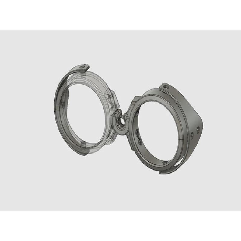 Insert wire through the middle link first. Center the Middle Link on the wire. Then insert both ends of the wire into the eye frame. Screw holes on the Lens Frame are sized for 4-40 screws. These screws will secure the wire to keep the Lens Frames connected.