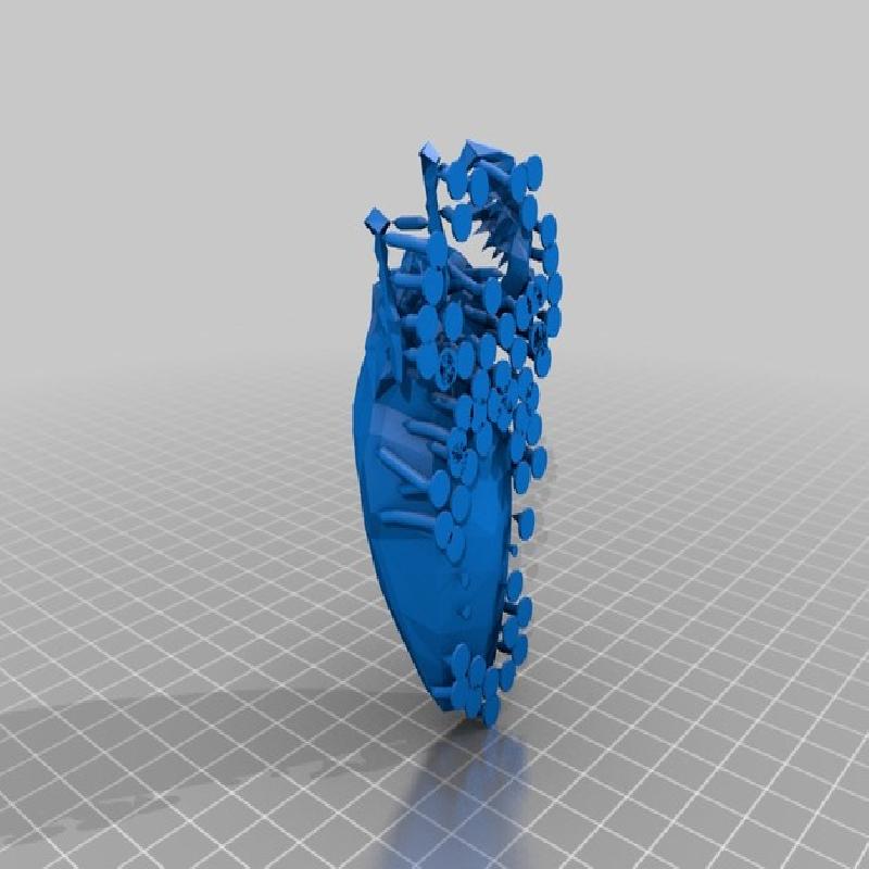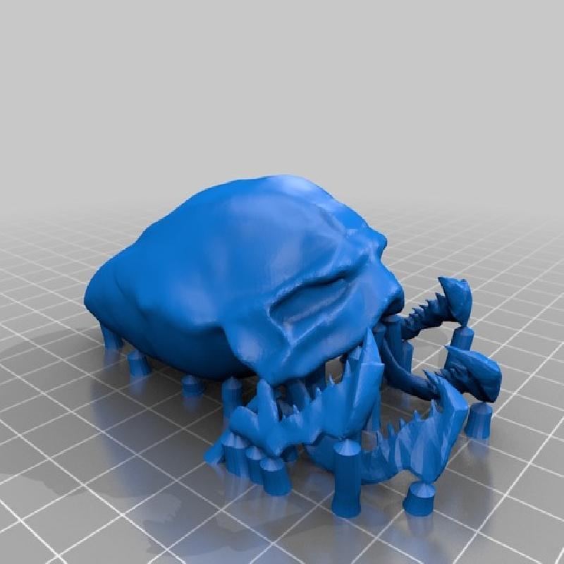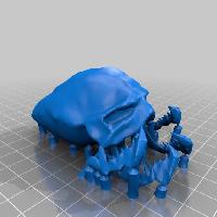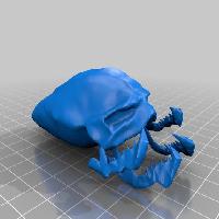 I separated the skull and base, and scaled the machete to about the right side. The skull could use some smoothing, and I need to add a hole in the back of the base for mounting, and find some way to get the base to hold the skull and machetes.