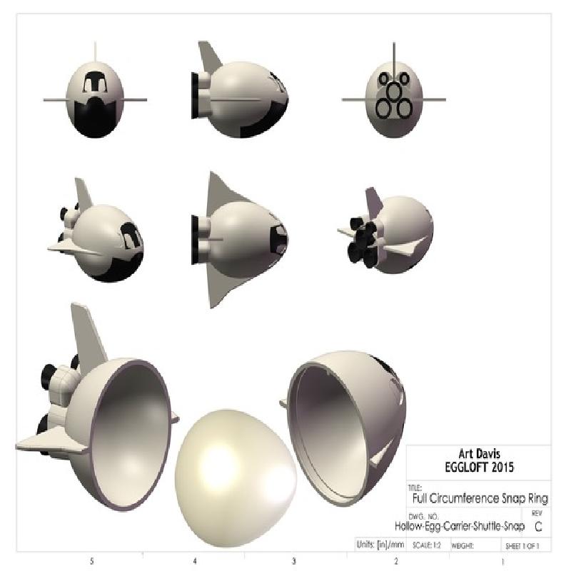 Egg shuttle "Egglantis". Snap together rocket model for holding an egg shaped payload.