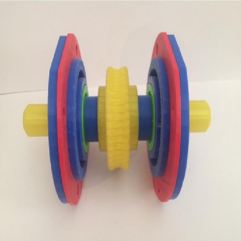 This is a high speed reducer with a 1:44 worm gear reduction. There are bolts needed to attach the retaining plates, end cap and motor housing, along with a plug. The bolts are .375-16 and the plug is a .500-13. I used PLA for most of the parts and TPEE for the gaskets and rubber pad for the base.