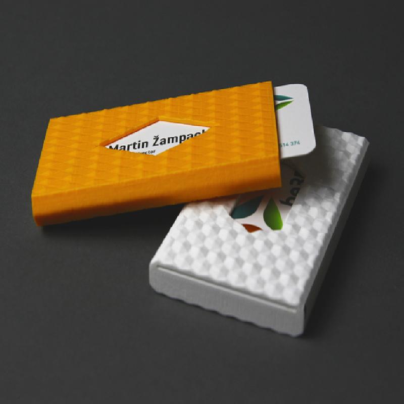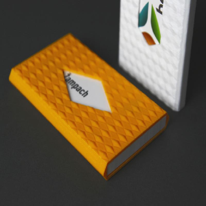 Print our card cases with hexagonal and diamond texture, designed to fit standard European 90 mm x 50 mm business cards.