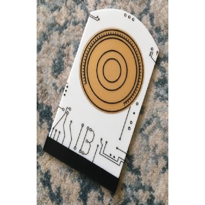 Print the holder in white, disc in gold and the bottom in black. Pause the print before the final two layers for the holder and the disc, change the filament to black to print the details.