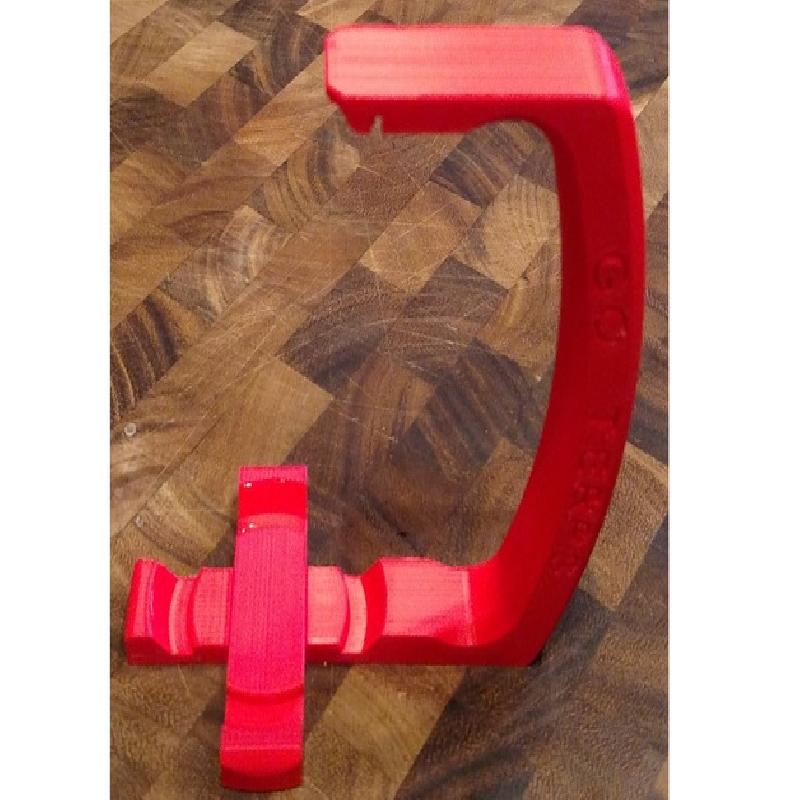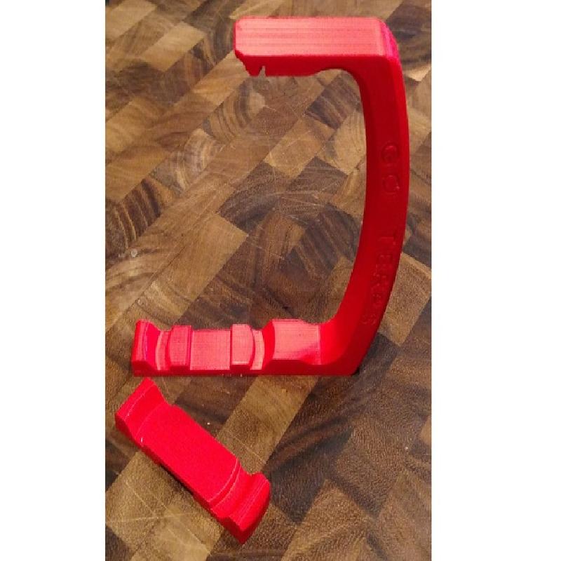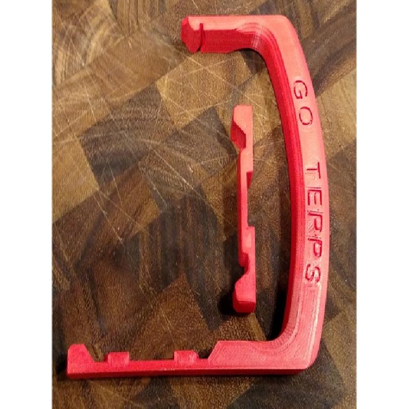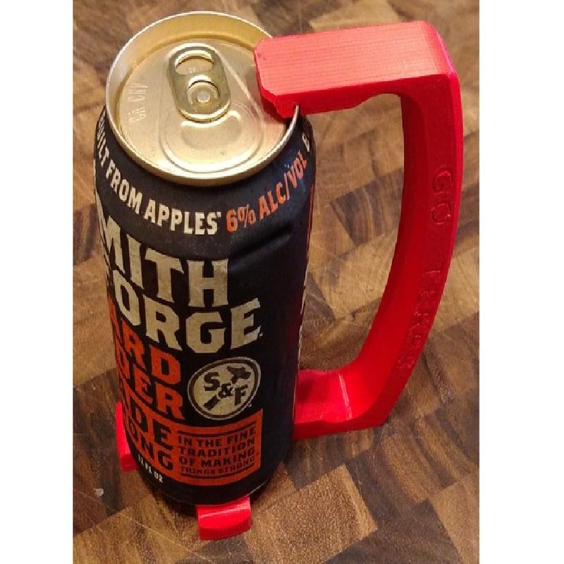 I liked the can holder put up by "ilmandorlone", but found it too short for the common12oz cans around here (Maryland). So I remade it a bit taller, for a can that is 4.815in [122.3mm] tall. Then I added a bit of text, "engraved" into one side of the handle. I also felt that the original made the can a bit easy to tip over, so I added a cross-base that can be glued in, if you like, but works just fine laid in the groove, since the can holds it in place.