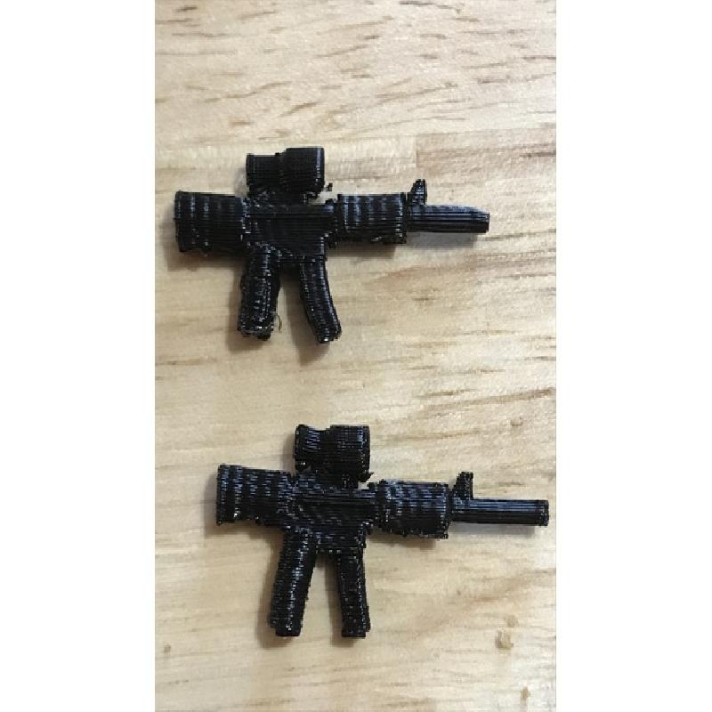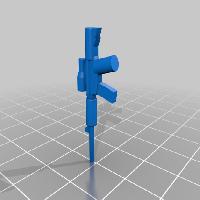 I printed this standing upright with supports. It seemed pretty easy to cut the supports off after. This one I printed in PLA but would recommend ABS, it seems harder. If the handle doesn't fit in a hand very well, I just hit it with a lighter, slid it into a lego hand, and squished it a bit. Seemed to help make it a bit tighter.