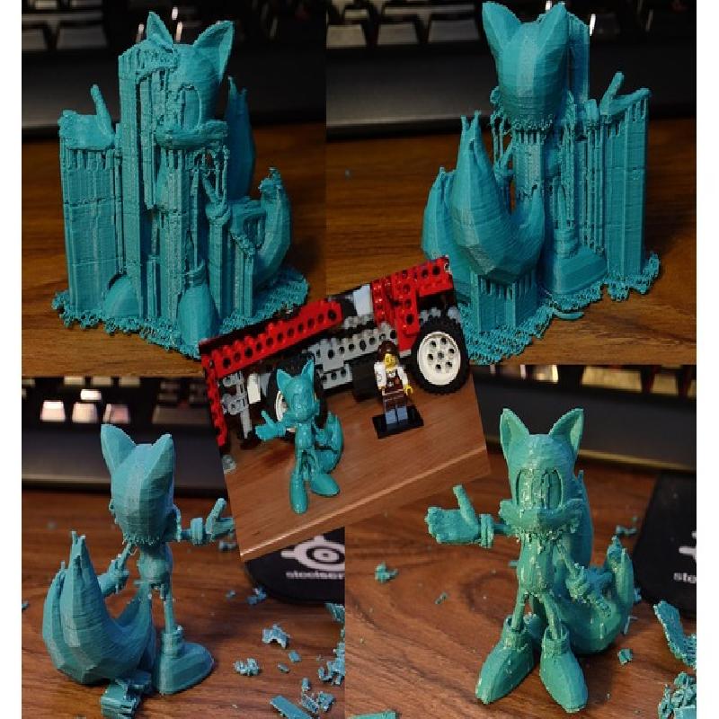 This is the first model I have ever printed (the green little one, on a Cube2) and also the last before travelling to Canada (the big one, on a Zortrax).