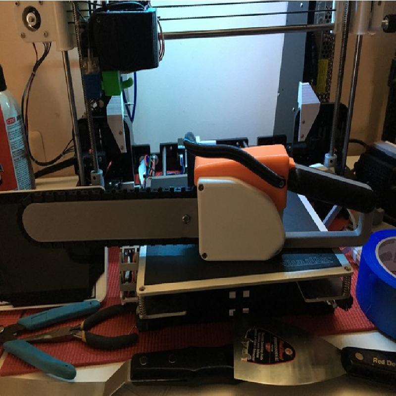 This is a chainsaw with a working hand cranked chain. It is modeled after a popular brand of chain saws. Most parts require supports. I did all the parts in PLA, but any material you're comfortable with should work. Infill % shouldn't matter for any of the parts. The longest parts are just over 200mm, so they should fit diagonally on most printers. Also, sorry but i still haven't figured out how to orient the stls that get posted here so they are the correct direction for printing so you'll have to rotate most of the parts to print them.