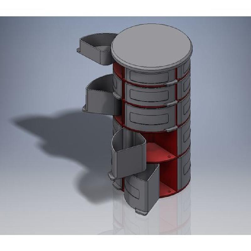 Zu jeder Ebene gehört ein Körper und 4 Einsätze in der entsprechenden Höhe.