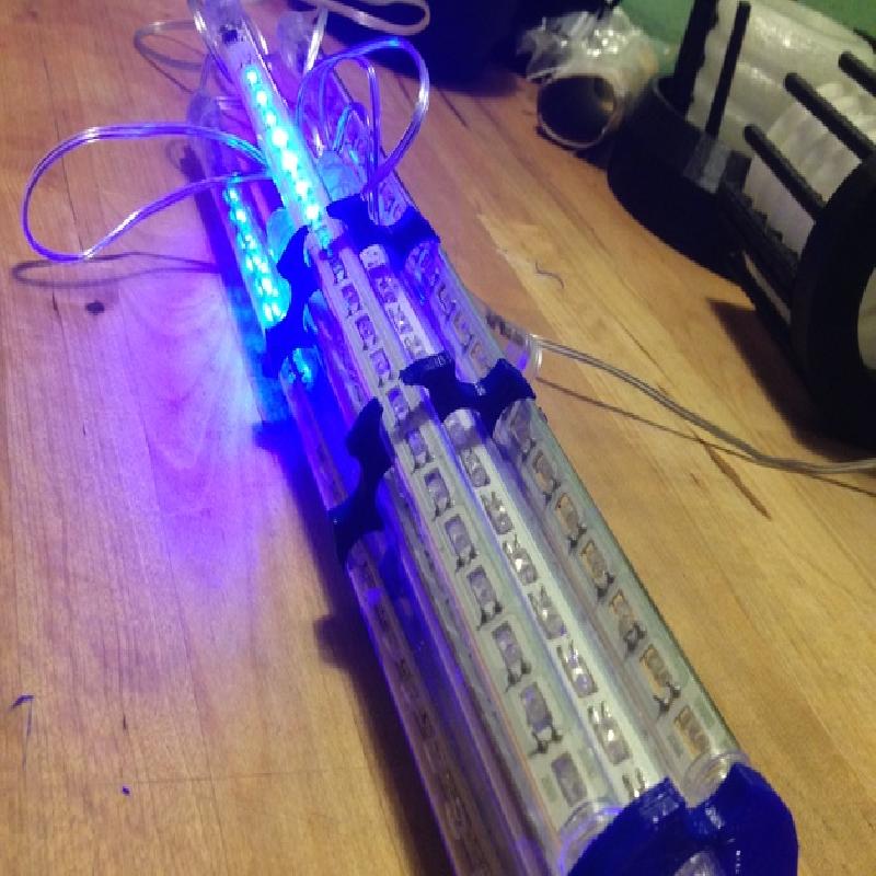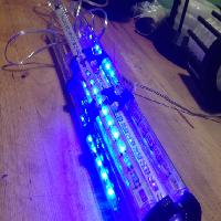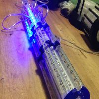 There's plenty of room inside to get creative with how you light it, but no need for fancy electronics. I used these cheap blue icicle lights to get the desired pulsing effect, available on Amazon.com: http://www.amazon.com/gp/product/B00A2G4CEM?ie=UTF8&camp=213733&creative=393177&creativeASIN=B00A2G4CEM&linkCode=shr&tag=theplamik-20