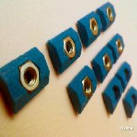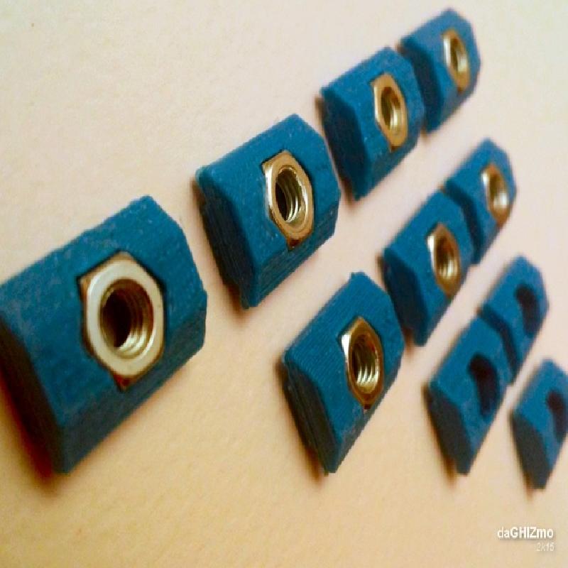 Press by hand an M4 nut in the receptacles. It will stay in position due to the low clearance between printed part and the nut