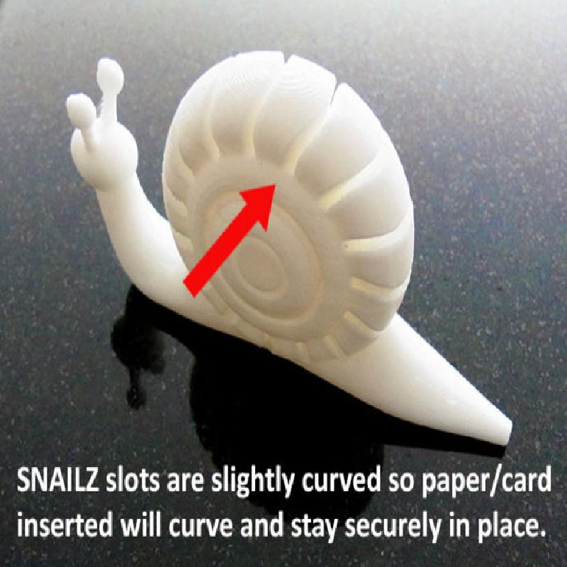 'SNAILZ' is a simple fun print that holds notes and cards in the curved slots in its shell. They're for holding notes reminding you of things to do, as a business card holder or even in the kitchen to hold recipes.